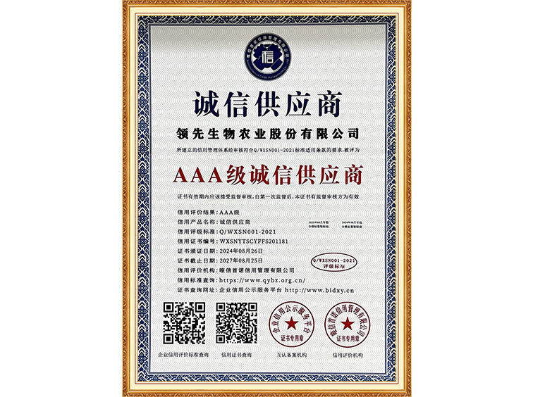 AAA級(jí)誠(chéng)信經(jīng)營(yíng)示范單位